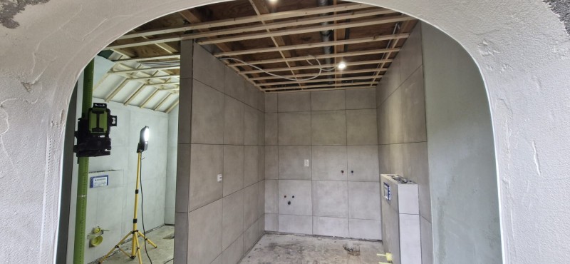 Door de koudere maanden December en Januari hebben we wat minder kunnen doen, maar we zijn alweer een aantal weken hard aan het werk. De wandtegels zitten erop, ze zijn ook al gevoegd, binnenkort starten we met het plafond. We streven ernaar het nieuwe sanitair in de loop van dit seizoen klaar te hebben. Tot die tijd kun je natuurlijk gewoon gebruikmaken van ons vertrouwde, bestaande sanitair.